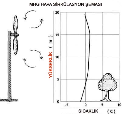MHG don kırıcı 14-15 m yüksekteki sıcak havayı alarak donun olduğu yere doğru sıcak havayı püskürtür ve sıcak hava ile donun olduğu yerdeki soğuk havayı birbiri ile karıştırıp hava sirkülasyonu sağlar. Böylece ortam sıcaklığı artar ve donu bu şekilde önler.Sizde
